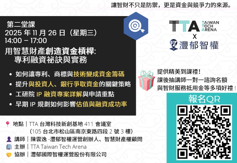 #TTA講座 #智慧財產 #創業必修課 #專利融資 #IP避坑指南